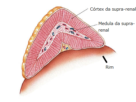 posicionadas acima dos rins, cada qual em lugares diferentes: uma na região